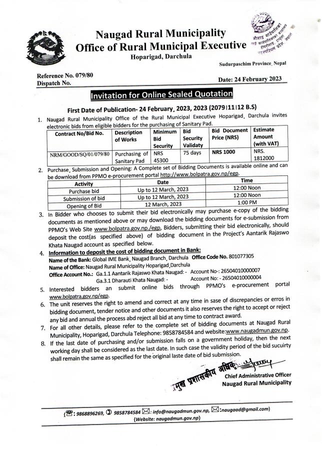 बोलपत्र आह्वान सम्बन्धी सूचना