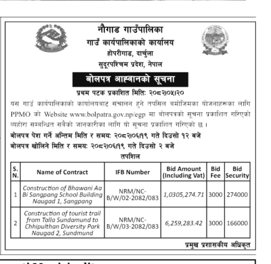 बोलपत्र आह्वान सम्बन्धी सूचना !
