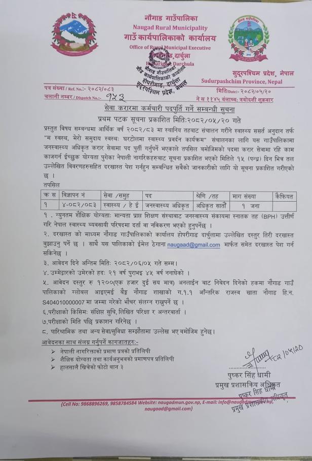 Home » सेवा करारमा कर्मचारी पदपूर्ती गर्ने सम्बन्धी सूचना !
