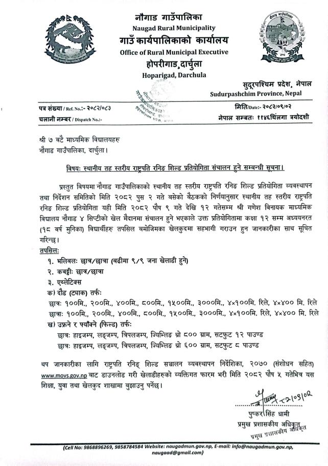 Home » स्थानीय तह स्तरीय राष्ट्रपती रनिङ सिल्ड प्रतियोगिता सञ्चालन सम्बन्धमा ।